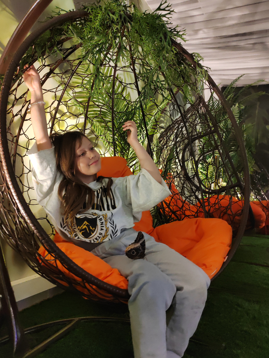 Бабочки ассоциируются у нас с весенними и летними деньками, цветением лугов и садов... а ещё с беззаботным детством😍. Мне кажется все дети ловили этих прекрасных созданий👍. Сейчас нам не нужно ждать лета, чтобы увидеть этих удивительных насекомых, нужно лишь доехать до Моя бабочка | Парк бабочек в ТРК MARi Я никогда не была в подобных местах и поэтому была просто очарована❤️... красиво оформленное помещение (все в зелени и цветах), играет мелодичная музыка, льётся вода... много кресел-качель, чтобы насладиться моментом и конечно бабочками. Заботливые сотрудника вам сами принесут и посадят бабочек в руки. Поделятся информацией и расскажут про всех живущих там бабочек...павлиноглазка атлас, калиго, палинур, тройдес и т. д. Замечательное место, где замедляешься и созерцаешь мир самых прекрасных насекомых. Я например, впервые наблюдала как бабочка пьёт апельсиновый нектар🤷. Вы же знаете, что можно и дома наблюдать за превращением гусеницы в бабочку?! Есть такие наборы, бабо