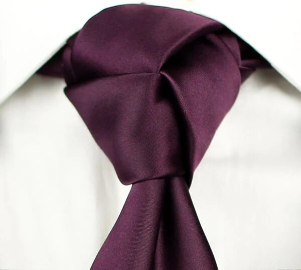 «Тринити» (от англ. trinity — троица) — сложный, но эффектный вид узла шестиугольной формы. Он прекрасно дополнит рубашку с острым воротником, особенно в сочетании с кардиганом с V-образным вырезом. Это красивый узел на галстуке, который станет изысканной деталью вашего образа. Расположите галстук вокруг шеи так, чтобы узкий конец находился ниже широкого. Возьмите узкий конец и положите его на широкий. В отличии от многих других узлов, в данном случае широкий конец использоваться не будет. Поэтому сразу отрегулируйте его желаемую длину. Возьмите узкий конец и оберните его вокруг той части галстука, которая проходит вокруг воротника. Потяните узкий конец вниз и затяните. Затем возьмите узкий конец и заведите его под широкий конец галстука. Теперь возьмите узкий конец и оберните его вокруг части галстука, которая проходит вокруг воротника. Потяните узкий конец вниз и затяните. Затем снова возьмите узкий конец и оберните его вокруг широкого конца галстука. Вновь возьмите узкий конец и пр