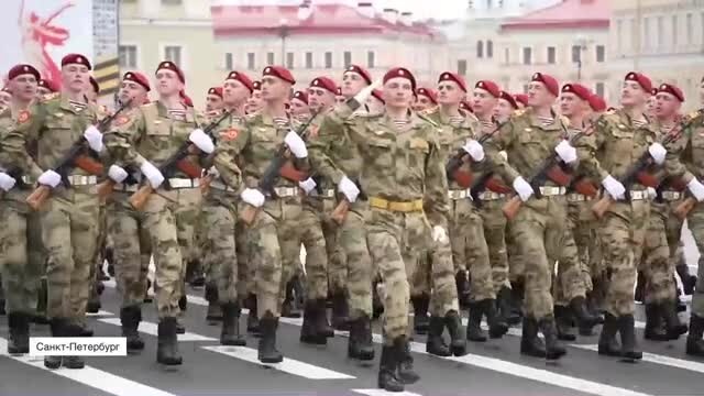 В Петербурге на Дворцовой площади прошла генеральная репетиция парада, посвященного 80-й годовщине Великой Победы. Участие приняли свыше 5,5 тысяч военнослужащих, включая росгвардейцев, кадетов, воспитанников довузовских образовательных учреждений.
