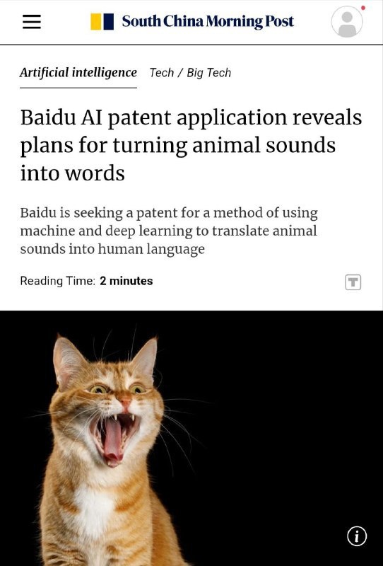🐾 Baidu запатентовала переводчик с языка животных на человеческий