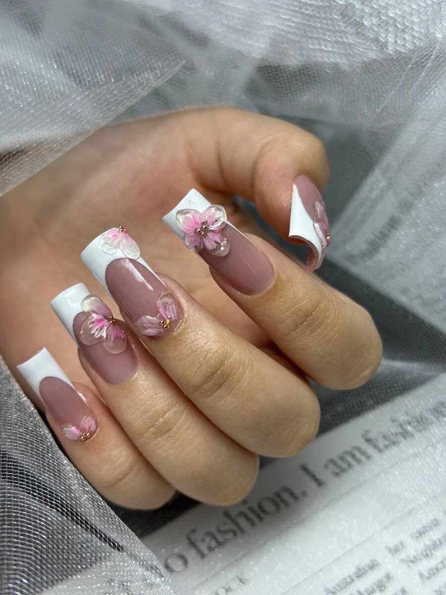 🖤🖤🖤🖤🖤🖤🖤🖤 Сегодня у меня интересная работа. Наращивание. Люблю длину😍 Масштаб работы: 🖤Выполнили комбинированный маникюр; 🖤Наращивание выполнили на верхние формы; 🖤Дизайн выбрала моя гостья: френч и цветы, вылепленные вручную. С каждым разом наращивание выходит всё лучше и лучше. Дело практики. В будущем буду приобретать формы, чтобы выполнять наращивание на готовность.