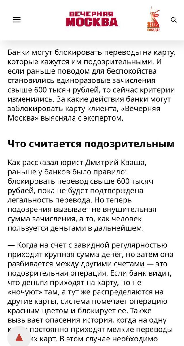Заблокировали карту, что делать? Сколько и кому можно переводить? С такими вопросами обратился ко мне знакомый Парни работают в баре, общий чай после каждой смены раскидывает на карты бар-менеджер, вот и не понравились банку эти операции 🤷♂️ Как делать так, чтобы карты не блокировали об этом поговорили в статье с Вечерней Москвой