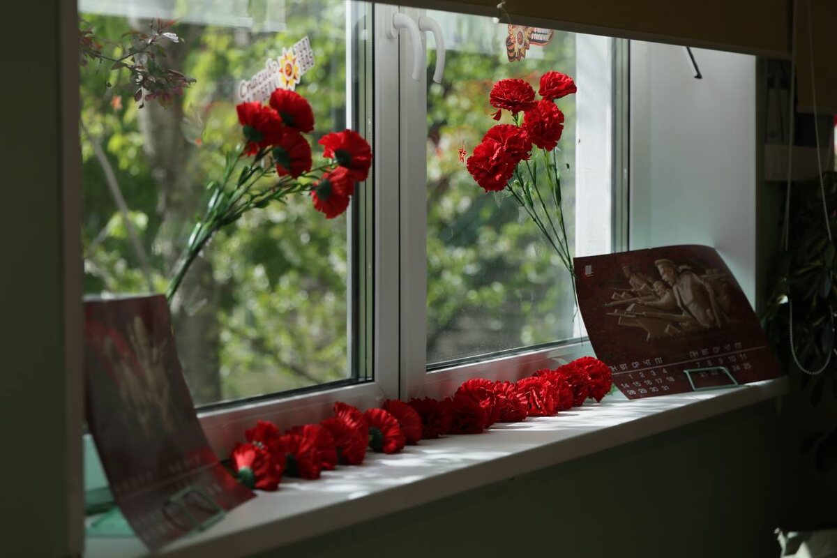 π·πΊ ΠΠΊΠ½Π° ΠΠΎΠ±Π΅Π΄Ρ: ΠΏΠ°ΠΌΡΡΡ Π² ΠΊΠ°ΠΆΠ΄ΠΎΠΌ ΠΎΠΊΠ½Π΅ π Π‘Π²Π΅Ρ ΠΏΠ°ΠΌΡΡΠΈ ΠΈ Π³ΠΎΡΠ΄ΠΎΡΡΠΈ ΠΠ°ΡΠ° ΡΠΊΠΎΠ»Π° ΠΏΡΠΈΡΠΎΠ΅Π΄ΠΈΠ½ΠΈΠ»Π°ΡΡ ΠΊ Π²ΡΠ΅ΡΠΎΡΡΠΈΠΉΡΠΊΠΎΠΉ Π°ΠΊΡΠΈΠΈ Β«ΠΠΊΠ½Π° ΠΠΎΠ±Π΅Π΄ΡΒ», ΠΏΠΎΡΠ²ΡΡΡΠ½Π½ΠΎΠΉ 80-Π»Π΅ΡΠΈΡ ΠΠ΅Π»ΠΈΠΊΠΎΠΉ ΠΠΎΠ±Π΅Π΄Ρ. Π ΠΊΠ°ΠΆΠ΄ΠΎΠΌ ΠΎΡΠΎΡΠΌΠ»Π΅Π½Π½ΠΎΠΌ ΠΎΠΊΠ½Π΅ β ΡΠ°ΡΡΠΈΡΠ° Π±Π»Π°Π³ΠΎΠ΄Π°ΡΠ½ΠΎΡΡΠΈ ΡΠ΅ΠΌ, ΠΊΡΠΎ ΡΡΠ°ΠΆΠ°Π»ΡΡ Π·Π° ΠΌΠΈΡ ΠΈ ΡΠ²ΠΎΠ±ΠΎΠ΄Ρ. Π ΠΈΡΡΠ½ΠΊΠΈ, Π³Π΅ΠΎΡΠ³ΠΈΠ΅Π²ΡΠΊΠΈΠ΅ Π»Π΅Π½ΡΠΎΡΠΊΠΈ ΠΈ ΡΡΡΠΎΠΊΠΈ Π²ΠΎΠ΅Π½Π½ΡΡ