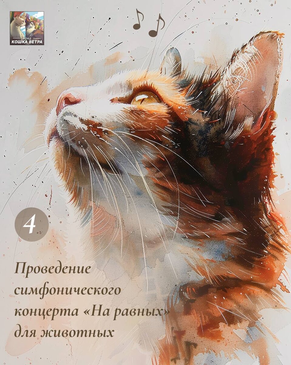 Симфонический концерт для животных — еще один замечательный проект фонда «Кошка ветра». Он связан с искусством. И о нем точно стоит узнать! Что же представляет собой проект фонда? Это уникальная концертная программа «На равных», разработанная совместно с Центром искусств «Москва». Она подразумевает организацию благотворительного концерта симфонической музыки современного композитора Сергея Желудкова. Почему это важно? Мероприятие названо так неслучайно. Оно призвано напомнить о том, что животные — такие же равноправные обитатели планеты, как и люди. Считаете, что именно этот проект заслуживает получения эксклюзивных возможностей? Голосуйте за него с помощью звезд в нашем Telegram-канале! ✨ ⭐️ Станьте голосом в «Симфония жизни»! Присоединяясь к нашей программе меценатства, вы не просто жертвуете — вы дирижируете переменами! 🔗 Узнать о возможностях меценатства 🔗 Погрузиться #ПерваяЛедиЭтоТы #КоронаИзДоброты
