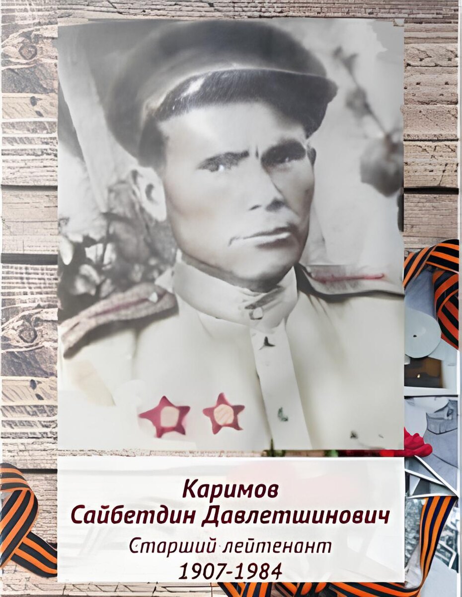Своего деда я знаю по рассказам моего отца, по его наградным листам, орденам и медалям. Родился мой дед в 1905 в селе Канбеково, окруженном великолепной природой, в сердце Башкирии. Он был очень целеустремлённым, отважным, полным любовью к Родине и к миру человеком. Самостоятельно изучил кириллицу и латынь, был одним из первых руководителей сельсовета и стал первым прокурором района. В годы Великой Отечественной войны он воевал в должности младшего политрука, замполита батальона, полка. Принимал участие в кровопролитных боях, был не раз контужен, госпитализирован, но снова возвращался в бой. В 1943 году в должности командира роты противотанковых ружей 812-го стрелкового полка был награжден Орденом «Красная Звезда» за отвагу и мужество при выполнении боевых задач. Он через плотный неподвижный заградительный огонь противника смог доставить боевой приказ в полк своевременно! В 1945 году в должности командира минометного вода 812-го стрелкового Краснознаменного полка, уже звании старшег