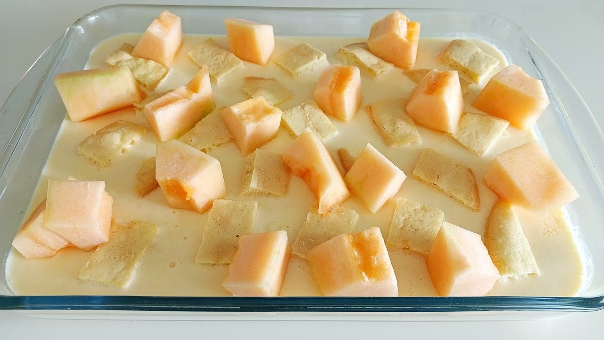 Бисквит: Суфле: Декор: Желатин заливаю молоком и перемешиваю. Оставляю набухать. Для бисквита яйца взбиваю с сахаром и солью. Добавляю муку, крахмал и разрыхлитель. Перемешиваю. Форму для выпекания с выстеленной пекарской бумагой смазываю сливочным маслом борта. В форму выкладываю тесто. Убираю форму с тестом в заранее разогретую до 170С духовку на 20 минут. Мякоть дыни отделил от кожуры и косточек. Дыню порубил на кубики и погрузил в блендер. Добавляю сахар и сметану. Желатин набух. Бисквит разрезаю на кубики. Желатин разогреваю до горяча. Вливаю горячий желатин в сливочную основу. Перемешиваю. Выливаю сливочное суфле в любую форму. Вкладываю бисквит. Убираю ёмкость в холодильник. Для декорирования дыню разрезаю на кубики. Японский дынный торт готов! Приятного аппетита! Рекомендации и особенности рецепта. Поддержите канал: 💰 Кошелёк ЮMoney: 410015462997635 Больше интересного в моём Телеграмм: Остались вопросы? Спрашивайте в комментариях.. Понравился рецепт? Спасибо за Лайк!