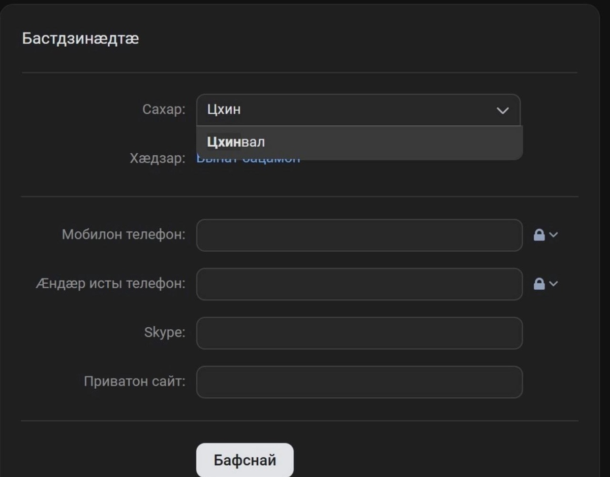 Положительное изменение: в социальной сети «ВКонтакте» столица Южной Осетии больше не маркируется как «Цхинвали, Шида-Картли». Учитывая поддержку осетинского языка, «ВКонтакте» представляется предпочтительной альтернативой западным социальным сетям, таким как Facebook. (@chom_mema)