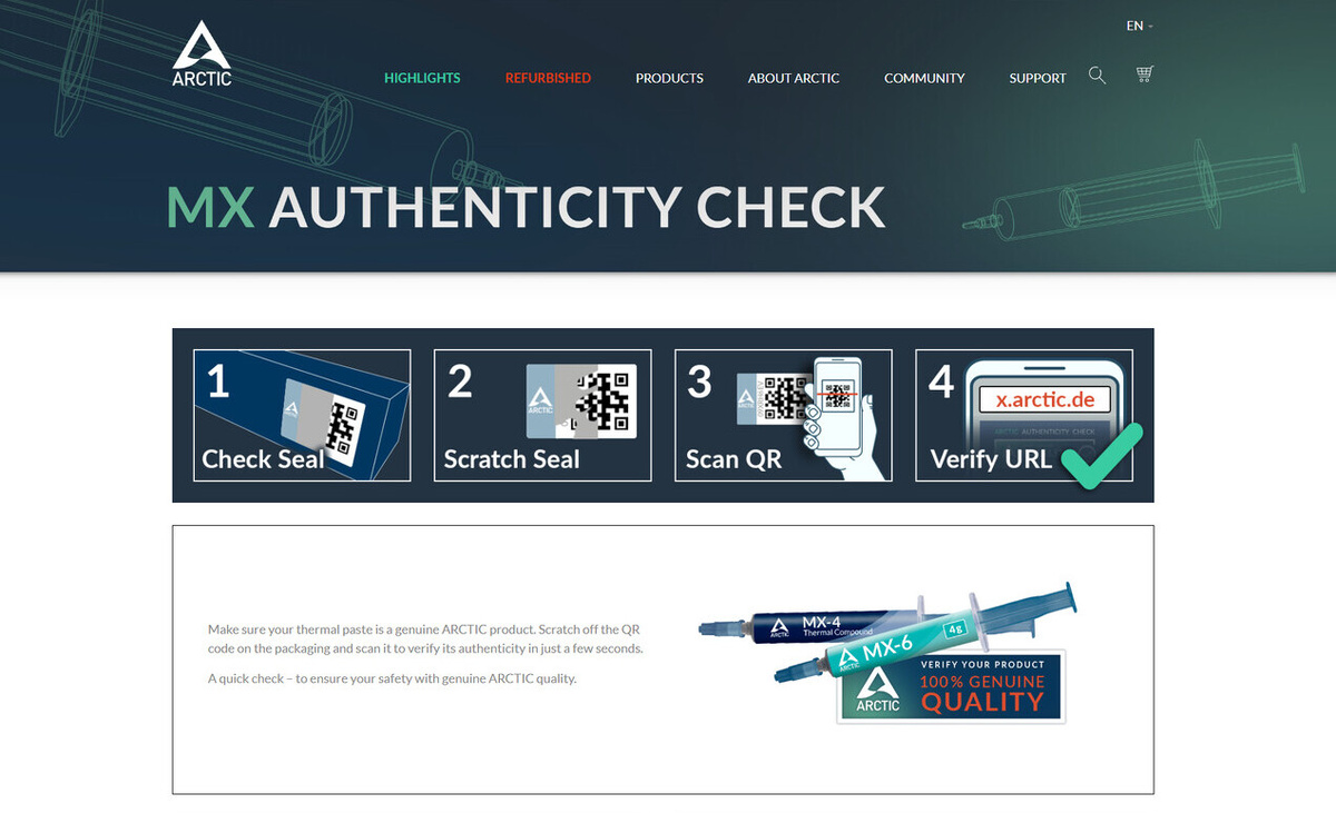 Arctic Cooling ввела систему MX Authenticity Check для проверки подлинности термопаст MX-4 и MX-6