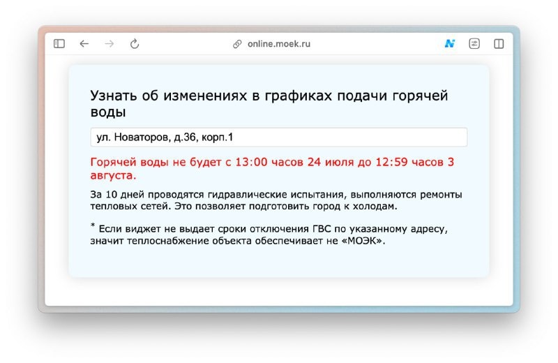 Пора проверять график отключения горячей воды — в Москве запустили онлайн-сервис с расписанием профилактических работ. Достаточно ввести свой адрес в поиске, после чего появятся даты отключения. Смотрим, когда закупать 5-литровки, здесь. Подробнее: https://hard-tm.su/threads/89400/ 🕹HARD-TM — Подписаться