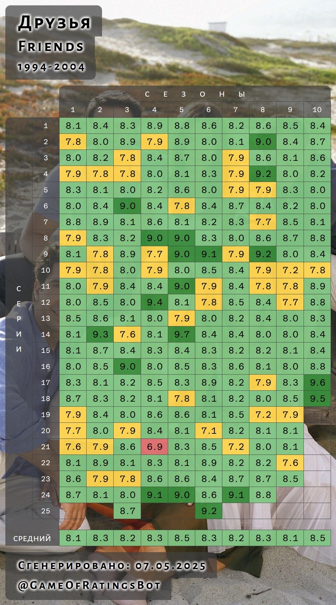 Эпизод "The One with the Morning After" — один из самых драматичных моментов всей истории "Друзей". Сериал "Друзья" — культовая американская комедия, которая вышла в эфир в 1994 году и на протяжении десяти сезонов завоевывала сердца зрителей по всему миру. История шестерых друзей, живущих в Нью-Йорке, наполнена юмором, жизненными ситуациями и искренними чувствами, благодаря чему сериал стал символом целого поколения. Герои — Рэйчел, Росс, Моника, Чендлер, Джоуи и Фиби — проходят через взлеты и падения, поддерживают друг друга и взрослеют вместе со зрителями. Особое внимание в "Друзьях" уделяется романтическим линиям, особенно отношениям Росса и Рэйчел. Их история — это смесь любви, недоразумений и борьбы за взаимопонимание. Именно эта сюжетная арка стала одной из самых запоминающихся и эмоционально насыщенных в сериале, и каждый поворот в их отношениях оставляет глубокий след в сердцах поклонников. @GameOfRatingsBot Эпизод "The One with the Morning After" (Сезон 3, Эпизод 16) — один из