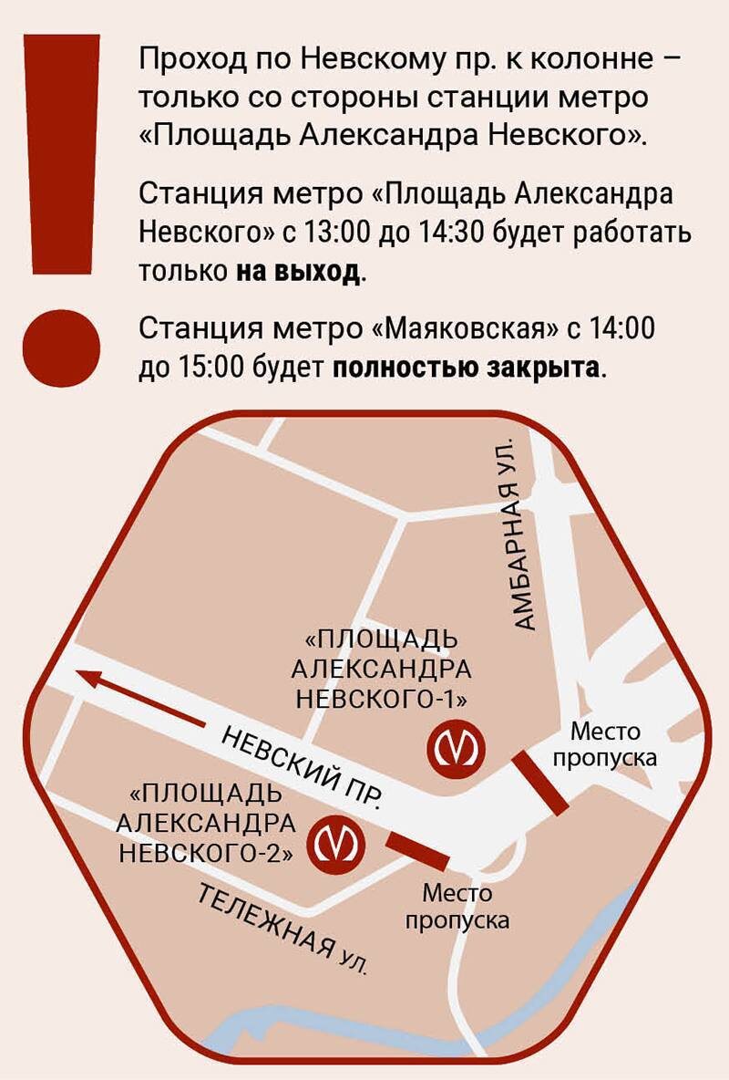 ▶️Изменения в работе метро на 9 мая 9 мая с 14:00 до 15:00 (по плану) «Бессмертный полк» пройдет по Невскому проспекту от пл. Восстания до Дворцовой пл. - Станция метро «Маяковская» будет закрыта с 14:00 до 15:00. - Станция «Площадь Александра Невского» с 13:00 до 14:30 — только на выход. 🌟@St.Petersburg Journal
