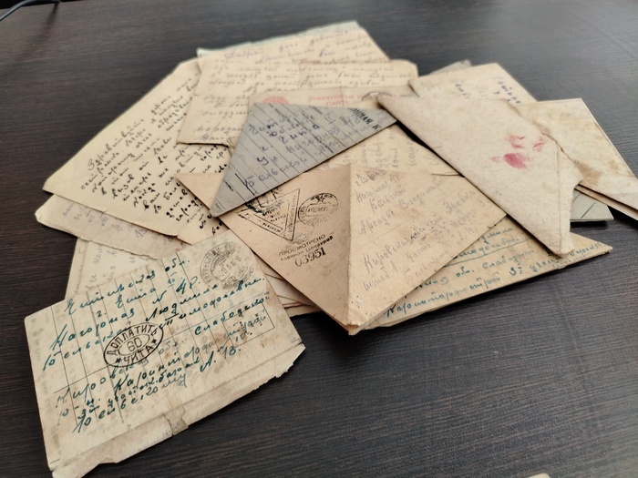Сегодня пришла женщина к нам на работу, в редакцию газеты, принесла письма. Те самые - треугольные.. С войны. Говорит, дедушка двоюродный часто писал домой. Обо всём, что происходило на войне. О буднях, о боях... Такие треугольные письма, я видел в кино, и музеях, но... чтобы можно было потрогать. По настоящему прикоснуться к этим тонким, пожелтевшим бумажкам, которым больше 80 лет, прочесть неровные строчки о том, как было там, что происходило там... Никогда не думал, что это возможно.. Аккуратно пытался расправить письма, разобрать неровный почерк. Честно говоря, даже пальцы дрожали. Тот, кто писал эти письма, погиб в феврале 1945 года. До Победы оставалась немногим больше пары месяцев. Вечная память всем, кто воевал с фашистами! И огромное спасибо и низкий поклон тем, кто помнит и хранит историю нашей страны и память о наших воинах! С Днём Победы! #День победы #письмасвойны #треугольныеписьма #моё. Пост автора Biysk22foto. Подписаться на Пикабу Познавательный. и Пикабу: Истории из
