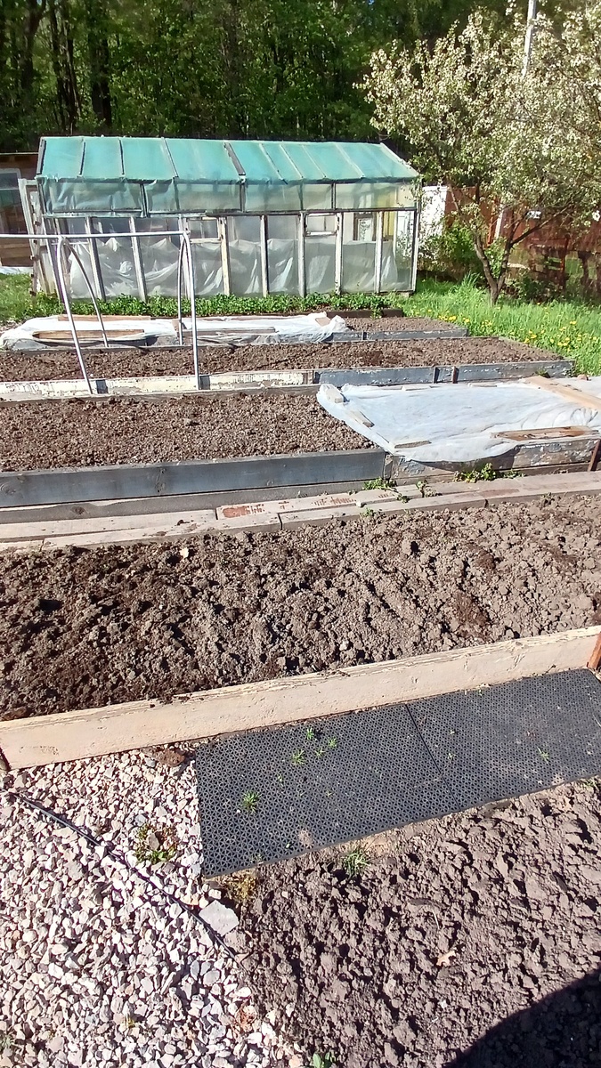 Приветствую всех своих читателей! Очень рада всех вас видеть на своем канале! Сегодня хочу рассказать, как прошел мой предпраздничный день. Он выдался на удивление теплым и солнечным, хотя по ночам сохраняются заморозки. Работы на участке еще очень много. Парник с высаженными раньше времени помидорами у меня закрыт всю неделю, а сами помидоры накрыты укрывным материалом. На улице холодно, пусть будут пока под одеяльцем. Огурцы пока не высаживала. У меня в рассаде 4 штуки, и еще 6 штук буду сеять сразу в землю. Этого количества хватает с лихвой. Еще в парник сею базилик, он теплолюбивый и чувствует себя там комфортно! Грядки все обработала, заправила весенним удобрением, золой и конским перегноем. Надеюсь урожай меня порадует. Сорняков выросло уже достаточно, хотя стоит прохладная погода. На грядку посадила горох, который уже проклюнулся, набух, был предварительно замочен в салфетке. Думаю, что прорастет быстро, вроде как он не боится холода! Морковку посеяла неделю назад. Накрыла