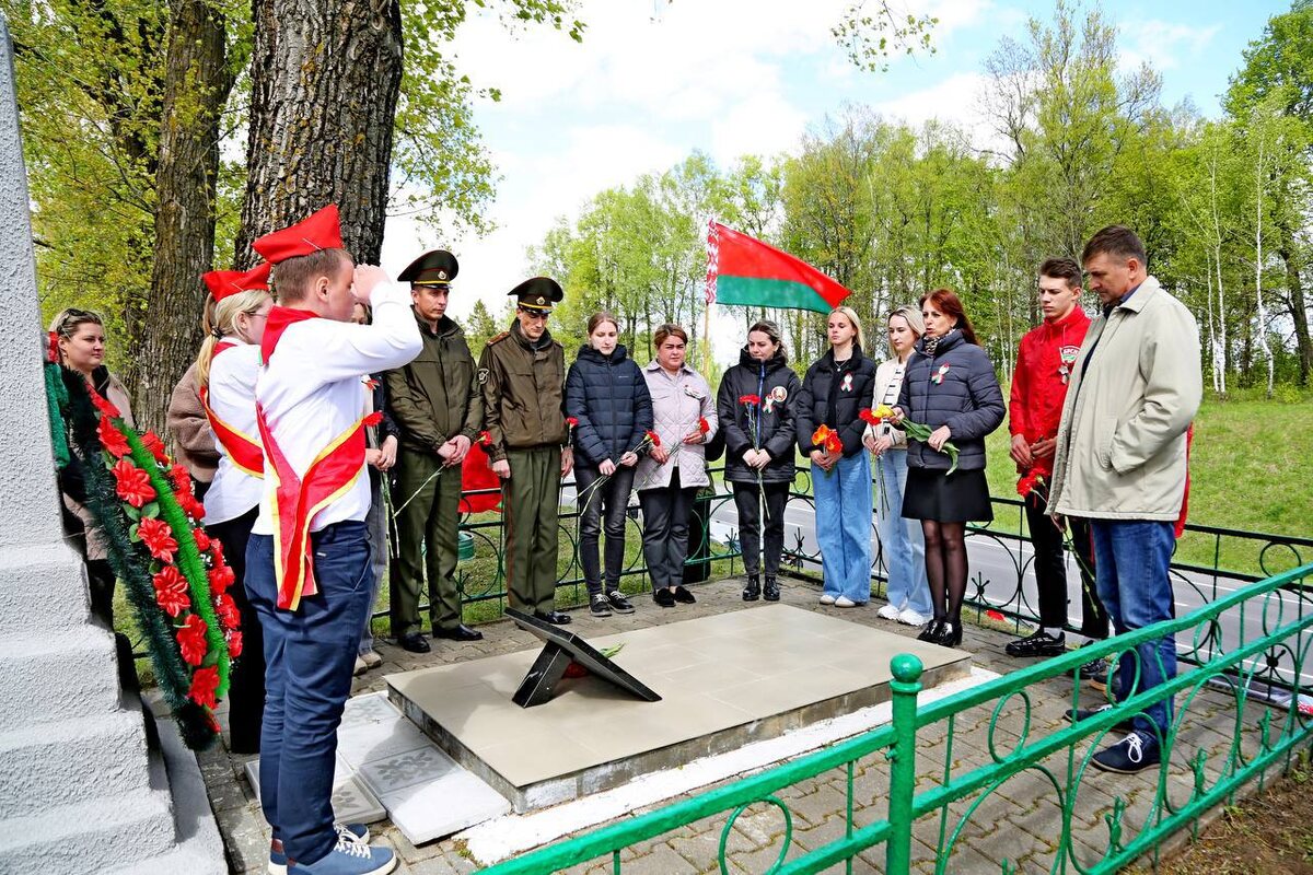 📌 Участники автопробега почтили память погибших воинов, партизан, мирных жителей минутой молчания и возложили цветы к братским могилам в деревнях Княжицы, Локути, Забродье.
