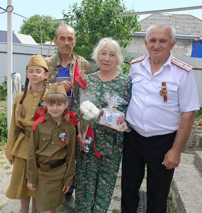 С приближающимся юбилеем Великой Победы поздравляли сегодня родителей участников специальной военной операции в ст. Неберджаевской. Индивидуально каждую семью навестили сегодня атаман Неберджаевского хуторского казачьего общества Крымского РКО войсковой старшина Виктор Иванович Сербин вместе с директором ДК ст. Неберджаевской Натальей Викторовной Мустафаеваевой и заведующей 9 районом социальной защиты Верой Константиновной Клещевой, а также с воспитанницами ДК. Родителям ребят, которые сейчас выполняют задачи специальной военной операции, преподнесли памятные подарки и цветы. #Победа80 #КубаньПобеда80