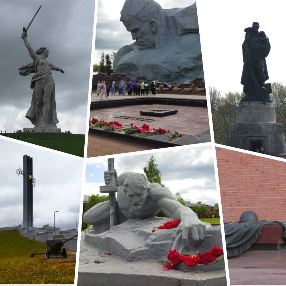 И это самые главные мемориалы: Могила Неизвестного Солдата в Москве; памятник маршалу Г. Жукову; «Журавли» на Соколиной горе в Саратове; «Родина-мать» на Мамаевом кургане в Волгограде; Воин-освободитель в Трептов парке в Берлине; скульптурные композиции «Жажда» и «Мужество» в мемориальном комплексе «Брестская крепость-герой».