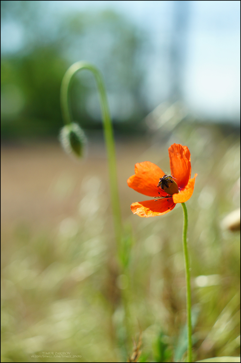 - "За одну станцию перед оговоренной глянь из тамбура на улицу, и если есть маки - выходи!" - прижимая телефон плечом к уху на ходу, догоняя городскую электричку, озвучивал только что пришедшую мысль я. И маки были. Их было немного, почти не видно. К полудню даже целое поле их опадает, как лён, и мы оказались там ровно в полдень. Не было красного ковра, не было очень крупных цветов, их, вероятно, не было в этом году и утром в таком количестве, но... ведь много-много маков здесь я уже фотографировал. А маленькие одиночки - они сейчас, такие, какие есть, и над ними яркое, синее небо. И вместо "ай не как тогда", "а вот тогда было лучше" и подобного нытья в голове было спокойное "как хорошо что цветут, такие красивые". И фотографии совсем другие, не похожие на те, что я снимал раньше. И день потом такой спокойный, нам не хотелось никуда спешить - так и вышло. И это хорошо =) #timezz_цветы