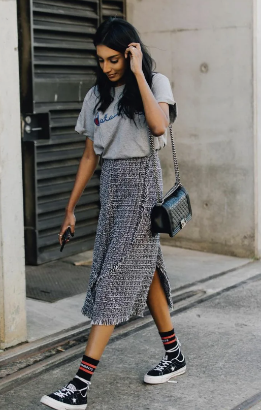 Как сочетать юбку и кроссовки, чтобы образ выглядел гармонично