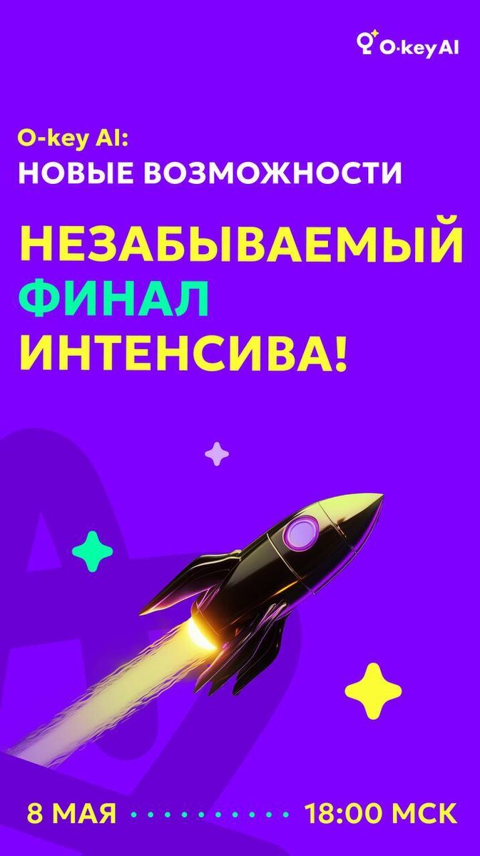 🌟 Приглашаем вас на открытый вебинар! 🌟 Дорогие друзья! Мы рады пригласить вас на вебинар, посвященный подведению итогов нашего интенсива! Это будет уникальная возможность заглянуть в процесс нашего обучения и первыми узнать о самых свежих новостях нашей платформы. 📅 Дата: 8 мая (четверг) 🕰️ Время: 18:00 Мск/Киев, 17:00 Европа, 20:00 Астана 📍 Zoom: https://us06web.zoom.us/j/82676952599 На вебинаре вас ждут: - Подведение итогов интенсива: что мы достигли вместе. - Много интересных новостей о нашей платформе. - Крутые анонсы и обновления, которые вас приятно удивят! - И, конечно же, дополнительные подарки для участников интенсива! 🎁 Не упустите шанс стать частью этого события! Мы уверены, что вам будет интересно и полезно. Ждем вас на вебинаре! Давайте вместе отпразднуем наши достижения и заглянем в будущее! С уважением, O-Key AI Team ✅ Подробнее про O-Key AI 👉 https://okeyai.pro/f1