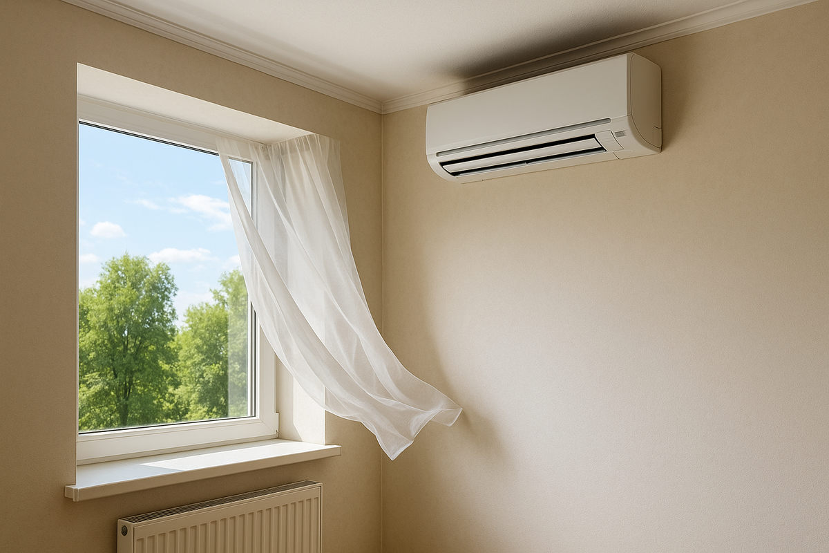 - Правильно сочетайте проветривание и кондиционирование – не включайте кондиционер при открытых окнах. Лучше сначала проветрить помещение, затем закрыть окна и включить кондиционер.