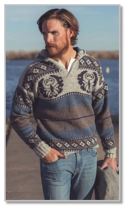 Вам потребуется: пряжа Brooklyn Tweed Shelter (100% шерсть, 128 м/50 г) – 200 (200, 250, 250, 250, 300) г светло-серого цвета (snowbound); 200 (200, 200, 200, 250, 300) г коричневого цвета (storm cloud); 150 (200, 200, 200, 200, 250) г голубого цвета (flannel); 100 (100, 100, 150, 150, 150) г синего цвета (old world); круговые спицы № 4mm.