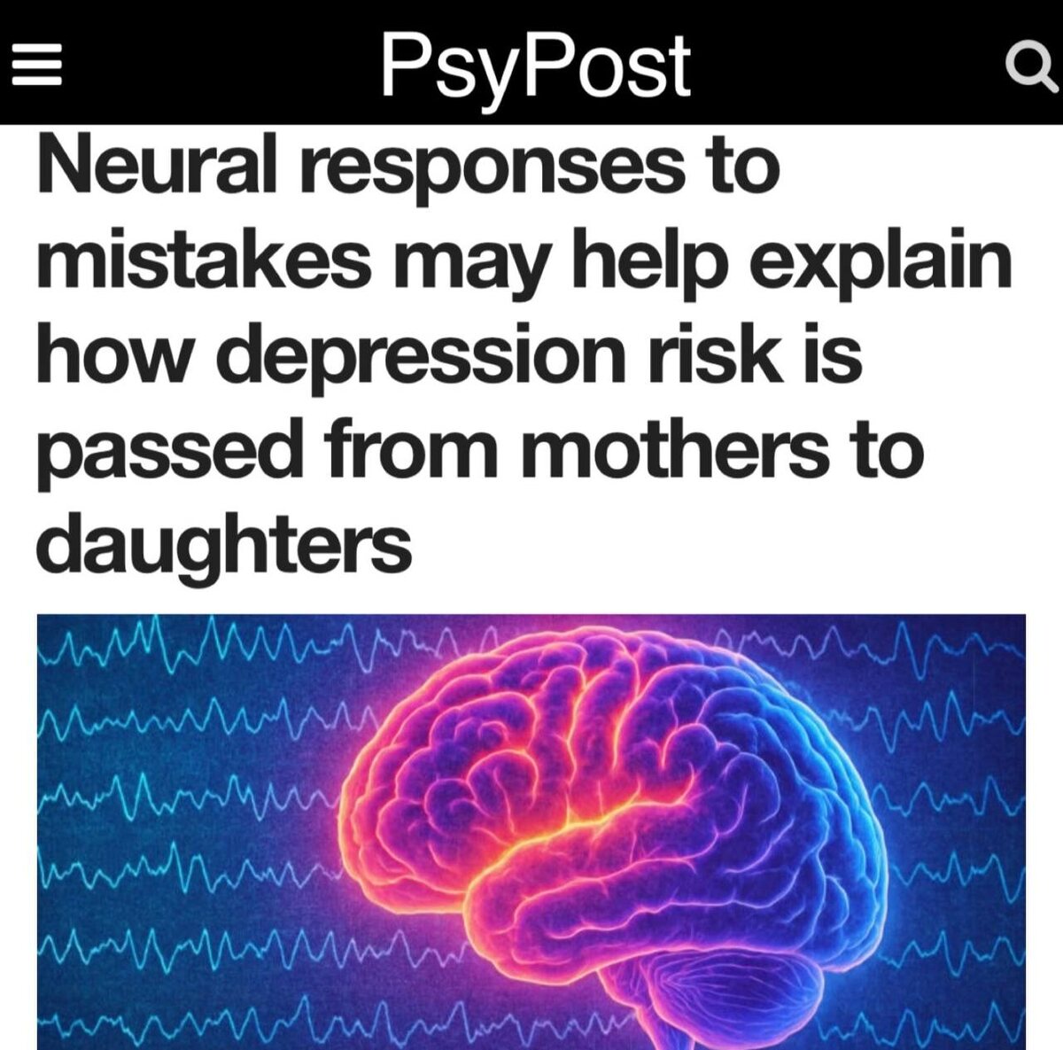🧠 Передаётся ли депрессия по наследству? Новые данные о "материнской тени" Исследование Калифорнийского университета показало: у дочерей женщин, страдающих депрессией, отмечаются схожие изменения в структурах мозга, участвующих в регуляции эмоций и стресса. Речь идёт о кортико-лимбической системе, включающей, в частности, миндалевидное тело и гиппокамп. 📊 Ключевые выводы: • У дочерей матерей с депрессией функциональная и структурная активность этих зон мозга часто повторяет материнскую • У сыновей такая закономерность не наблюдается — предположительно, из-за различий в нейронной пластичности и гормональной регуляции • Исследователи предполагают, что механизм передачи может быть как генетическим, так и эпигенетическим, включая влияние внутриутробного стресса ⚠️ Что это означает: • Повышенная реактивность на стресс у дочерей может проявляться ещё до клинических симптомов • Влияние наследственности не является фатальным: большую роль играют средовые факторы и стиль воспитания • Налич