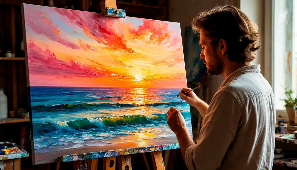 Художник сидел в своей мастерской, окруженный хаосом красок, кистей и холстов. На мольберте возвышалась почти законченная картина: буйство красок, взрыв эмоций, закат над океаном, написанный с такой страстью, что казалось, можно почувствовать соленый ветер и услышать крики чаек.