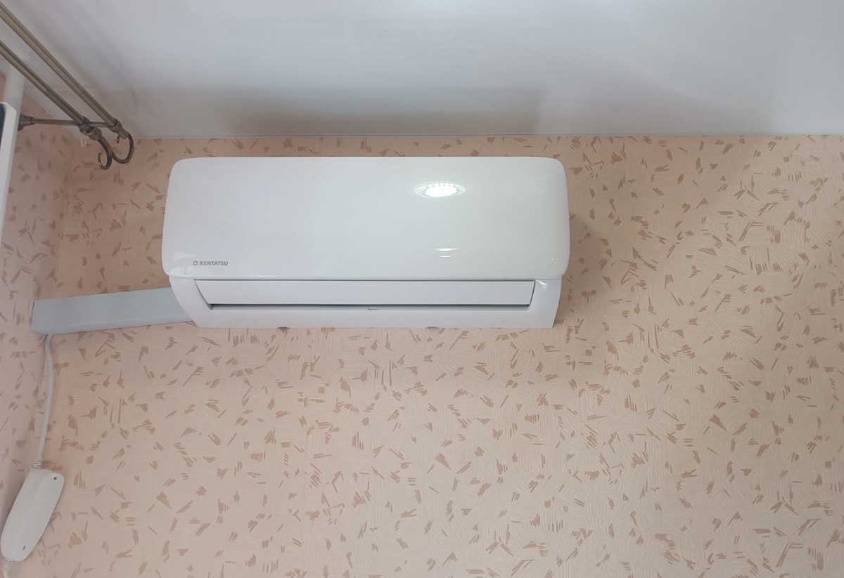 Стандартный монтаж сплит-системы был произведён в панельном доме КПД на проспекте Победы. Оборудование Kentatsu серия Kanami, мощностью 2,64 кВт, на площадь работы до 27 квадратных метров. Кстати на складе в Курске у нас имеются сплит-системы Kentatsu сразу с двух топ заводов Китая