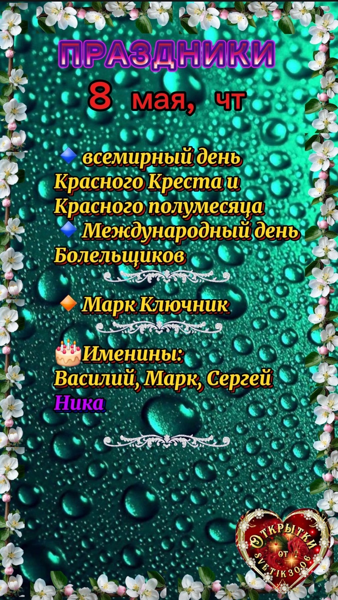🔸️Марк Ключник ПРИМЕТЫ: Если небо звездное и вечер теплый – урожай будет богатый. Весь день ясно и тепло – к жаркому лету. Целый день идут кратковременные холодные дожди – будет мало меда. Погожий день – к хорошему урожаю яровых. Если слышно кукушку, значит, холода ушли до осени.