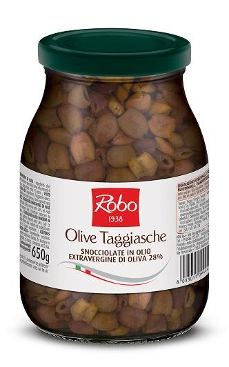 ОЛИВКИ «ТАДЖАСКЕ» В ОЛИВКОВОМ МАСЛЕ БЕЗ КОСТОЧКИ Robo 900 гр./ 650 гр