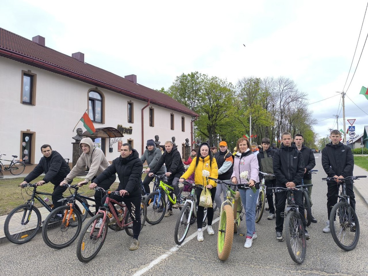 ⚡ "По местам боевой славы": некоторые моменты велопробега, посвящённого 80-летию Великой Победы ☝️Мероприятие объединило представителей разных поколений. Отдать дань уважения подвигу героев, ратному и трудовому, собралось более трех десятков участников. Маршрут следования: памятники воинской славы горпосёлка. 💥 Свой путь памяти начали от Аллеи Героев Советского Союза, уроженцев района. Сюда же потом и вернулись. 🥰 Поучаствовали также в акции союза молодёжи "Роднае - народнае!".