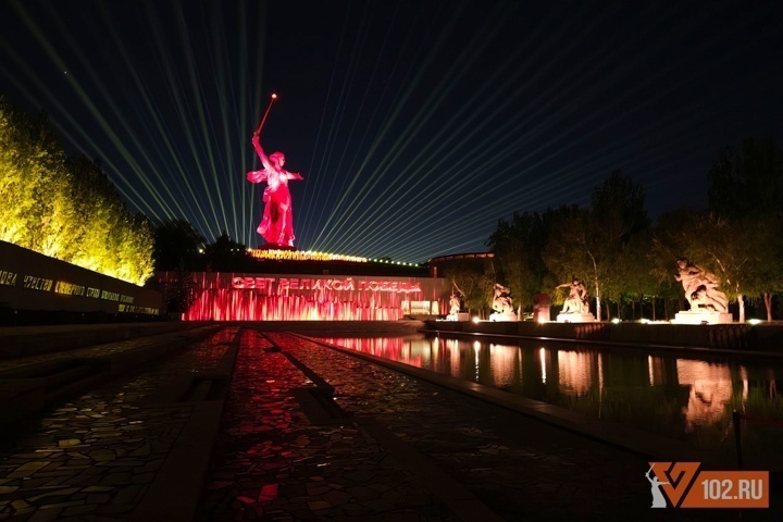 Сегодня, 7 мая, в Волгограде на Мамаевом кургане стартовал показ «Света Великой Победы». Как сообщает V102.RU, с 7 по 9 мая сеансы пройдут три раза в день. В акции в этом году впервые будут задействованы территория от подножия мемориального комплекса до главной скульптуры - «Родина-мать зовет!». Для полного погружения также на территории комплекса задействованы большие экраны на аллее пирамидальных тополей и у скульптуры «Стоять насмерть!», где покажут хронику военный лет. При подготовке акции также организаторами впервые задействованы возможности нейросетей. Помимо Мамаева кургана, жители и гости города-героя смогут увидеть инсталляцию и у музея-панорамы «Сталинградская битва». На здании впервые покажут полные изображения четырех крупнейших панорам страны - «Бородинская битва» (Москва), «Сталинградская битва» (Волгоград), «Оборона Севастополя 1854-1855 гг.» (Севастополь), «Волочаевская битва» (Хабаровск). «Свет Великой Победы» сможет увидеть каждый желающий 7 и 8 мая в 21:00, 22:00