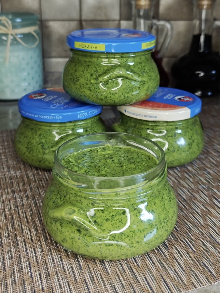 Соус идеально подходит к мясу, птице, рыбе, его можно использовать как маринад или заправку для салатов. Без термообработки — максимум свежести и витаминов! Ингредиенты: Приготовление: Крупно рубим зелень: кинзу, укроп, петрушку и зелёный лук. Перекладываем в чашу блендера, добавляем растительное масло и зубчики чеснока. Измельчаем. По мере уменьшения объёма добавляем оставшуюся зелень и продолжаем измельчать. Когда зелень перемолота, добавляем соль, уксус, лимонный сок и смесь перцев. Пробиваем всё блендером до пастообразного состояния. Раскладываем по стерильным баночкам и убираем на хранение в холодильник или холодный подвал.