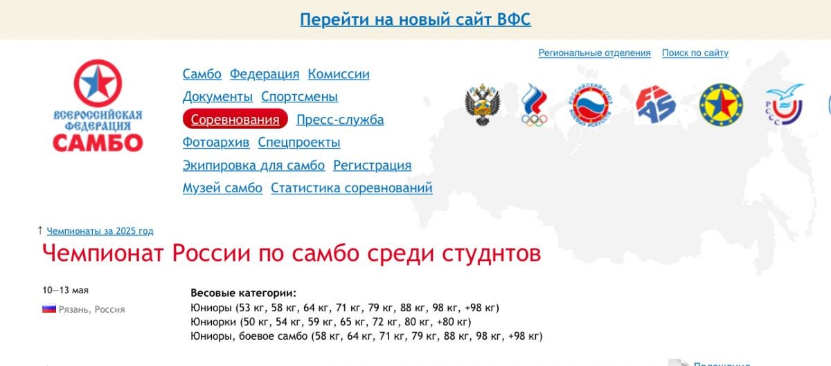 С 10 по 13 мая в Рязани пройдут Всероссийские соревнования по самбо среди студентов, посвященные памяти Заслуженного тренера СССР, профессора Е.М. Чумакова. К участию в финальном этапе соревнований допущены команды вузов, занявшие с 1 по 5 места в федеральных округах. Соревнования пройдут в следующих весовых категориях: