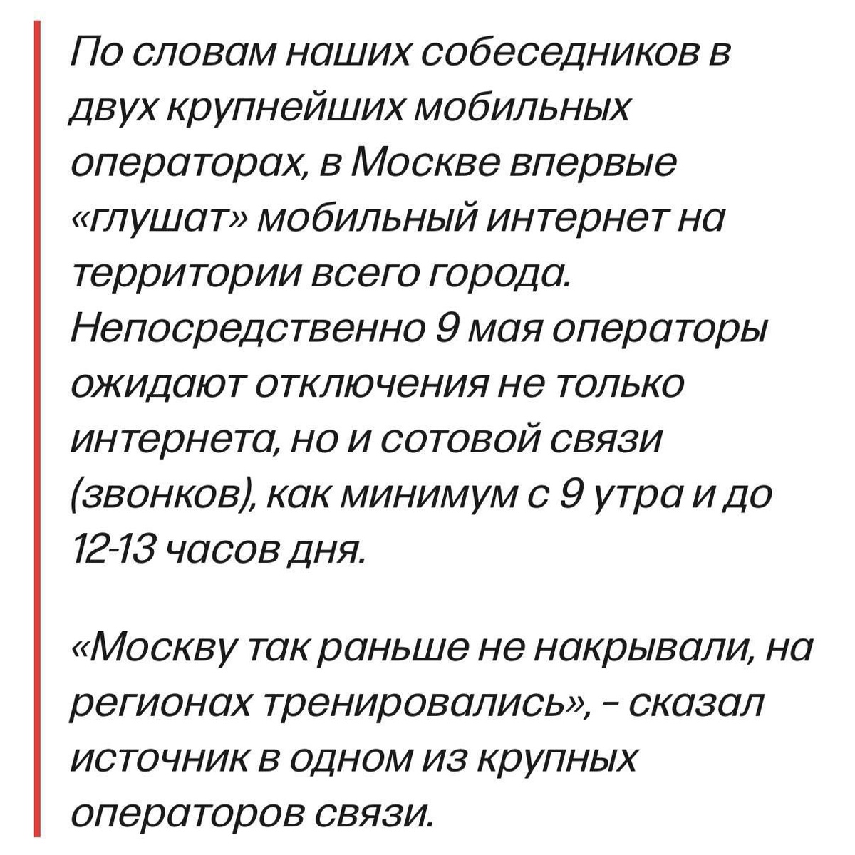 ❗️ 9 мая в Москве отключат мобильный интернет и всю сотовую связь, — СМИ