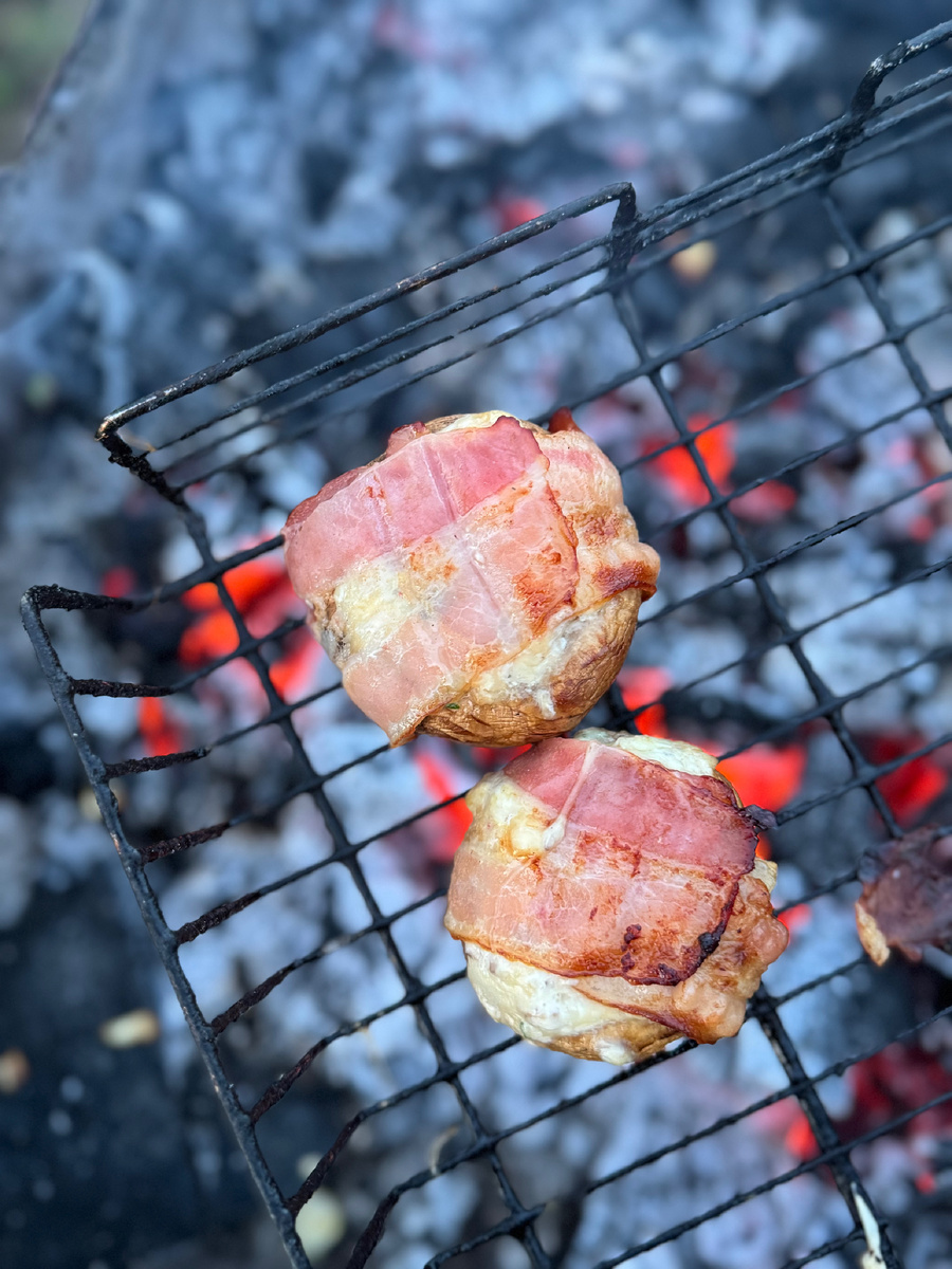 …потрясающе вкусное блюдо! 🤤 Друзья, в разгар сезона шашлыков, отдыха на природе я советую попробовать не сложное в приготовлении, но очень вкусное блюдо. Шампиньоны получается сочными, сыр внутри аппетитно расправляется, бекон хрустит и пахнет на всю округу! Гости будут в восторге. Приготовьте и не забудьте подписаться на мой канал, впереди много интересного. Нам потребуется шампиньоны, я взяла самые крупные Шампиньоны промываем, обсушиваем и удаляем ножку (она нас потребуется для начинки) Шампиньоны кладем в пакет, подсаливаем, добавляем прованские травы и соевый соус. Пакет завязываем, трясем и оставляем мариноваться минут на 20. А пока займемся начинкой. Ножки шампиньонов мелко нарезаем, добавляем сыр тертый на крупной терке, пару зубчиков чеснока, зелень и майонез Все перемешиваем и начиняем шляпки, сверху оборачиваем беконом Обжариваем на мангале с двух сторон. С нижней можно жарить подольше, с верхней стороны побыстрее, чтобы сыр не успел вытечь. Приятного аппетита! 😋