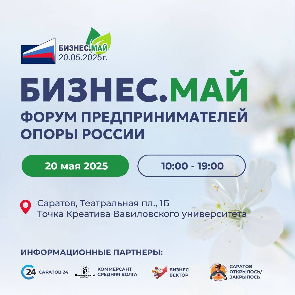 «Опора России» 20 мая проведет в Саратове большой форум «Бизнес.Май