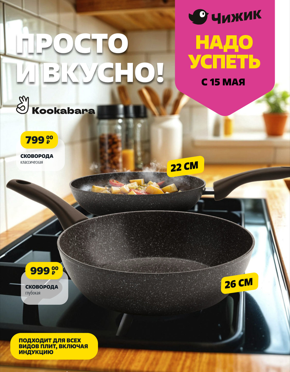 Скоро, на следующей неделе, появится пара новых сковородок разного размера. Они универсальны и подойдут для любой плиты. Удобно и практично!