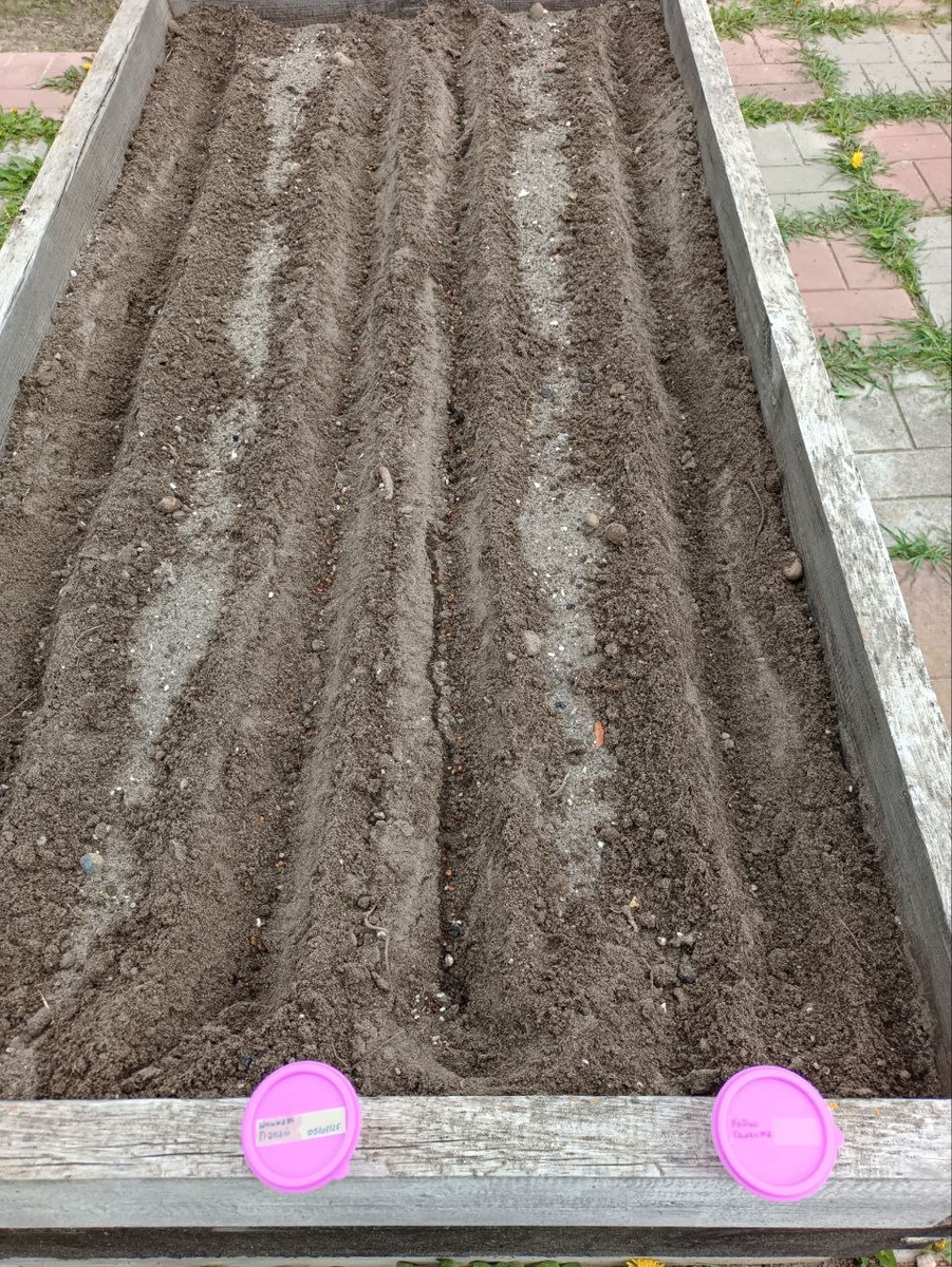 Посеял шпинат да редис. Не стал я поперёк грядки, да через дощечки делать рядки. Уже май месяц. Скоро сюда пойдут томаты да перцы. Зеленушка просто мешать будет. Посему делаю две бороздки вдоль по центру, и по краям. По центру пошёл шпинат, по краям редис. Семена хаотично, но равномерно по всей длине разбросал. Без фанатизма, между семечками расстояние не выдерживал, где-то по 2-3 семечка рядом падали. Не страшно. Проредить излишки всегда успеется.