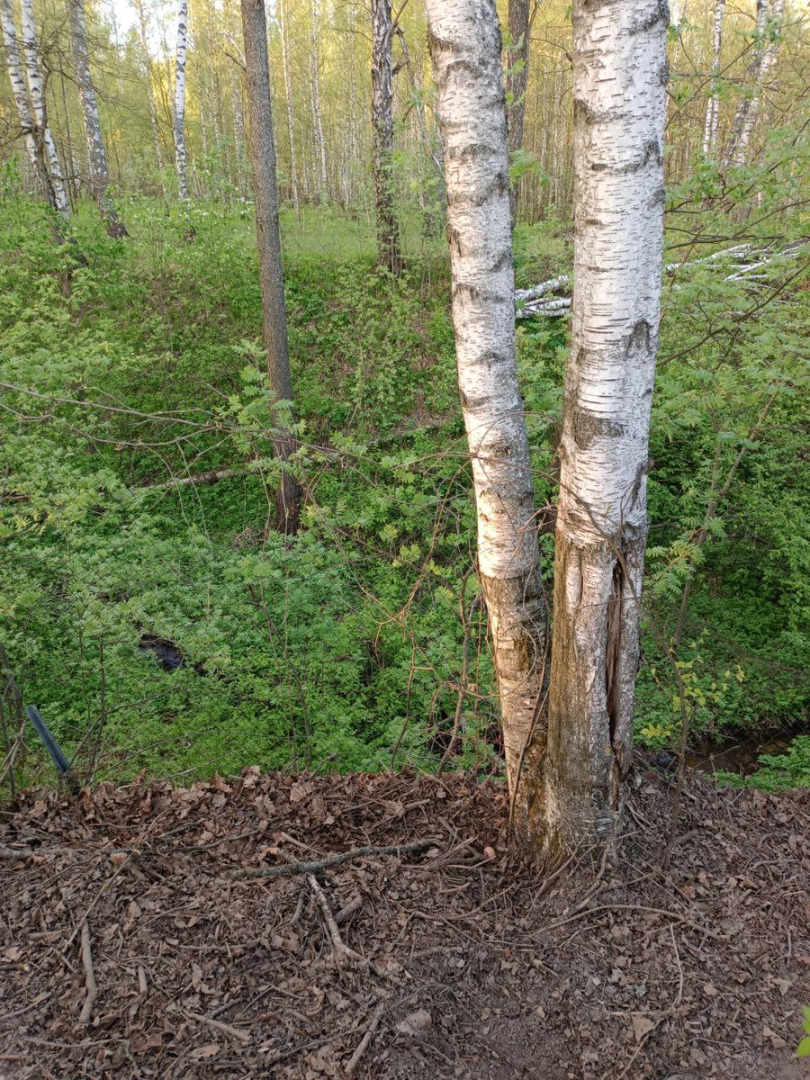 Одна из кур, что находится сейчас на территории летнего загона, упорно не хочет в геэнезде нестись. А так как у меня кроссы Доминант, то они любят тайники делать, прятать яйца, типа пойди поищи. На склоне оврага, там где основание берёзы, тайник 😏