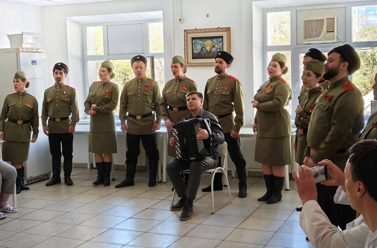 В дни празднования Дня Победы в Городе воинской славы Анапа проходит множество патриотических мероприятий. Однако не все могут их посетить. Каждого ветерана поздравят на дому творческие коллективы. Также организовывают концерты для тех, кто вынуждено встречает главный праздник страны в стационаре больницы.
