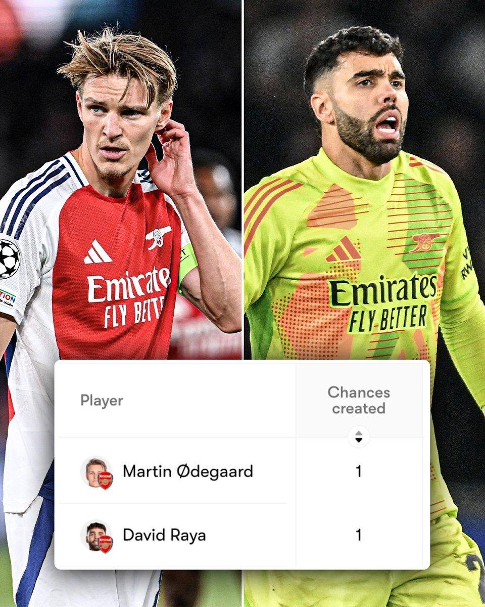 В ответном полуфинальном матче Лиги Чемпионов с ПСЖ капитан "Арсенала" Мартин Эдегор создал столько же моментов, как и голкипер Давид Райя 😲