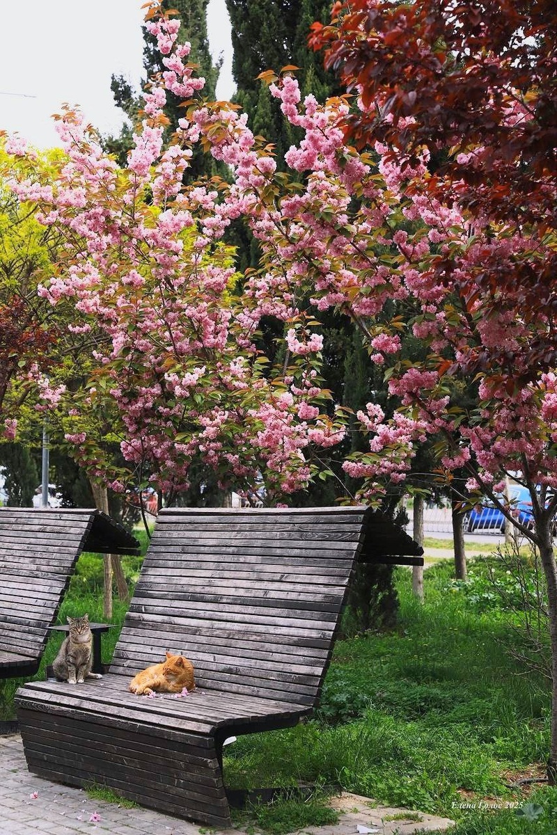 🌸 Говорят, сон в лепестках сакуры продлевает жизнь и улучшает аппетит. Особенно, если у тебя выходной каждый день! 🐈 В нашем городе прекрасно всё: дорожки, лавочки, цветущие деревья и главные ценители того самого - прекрасного. 📷 @nepovtor_sevastopol @mykrim 🔥Крым - лучшие локации