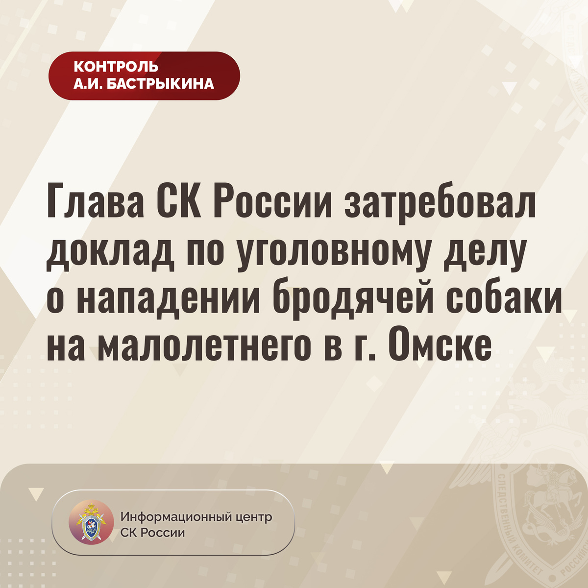 Глава СК России затребовал доклад по уголовному делу о нападении бродячей собаки на малолетнего в г. Омске В СУ СК России по Омской области возбуждено уголовное дело по факту нападения бродячей собаки на восьмилетнего мальчика в городе Омске. По данным следствия, 5 мая текущего года агрессивное животное набросилось на ребенка в частном секторе, укусив его за лицо. Пострадавший госпитализирован, ему потребовалось оперативное вмешательство. Ситуация освещается в социальных сетях. Отмечается, что ранее собака также напала на сестру малолетнего. Председатель Следственного комитета Российской Федерации Александр Иванович Бастрыкин затребовал у руководителя СУ СК России по Омской области Виталия Владимировича Батищева доклад о ходе и результатах расследования уголовного дела. Исполнение поручения поставлено на контроль в центральном аппарате ведомства. #СледственныйКомитет #СКРоссии #СКР #ИЦСКР #ИнформационныйЦентр #АлександрБастрыкин #ПредседательСКР #КонтрольПредседателяСКР #КомментарийКо