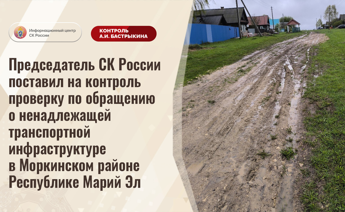 Председатель СК России поставил на контроль проверку по обращению о ненадлежащей транспортной инфраструктуре в Моркинском районе