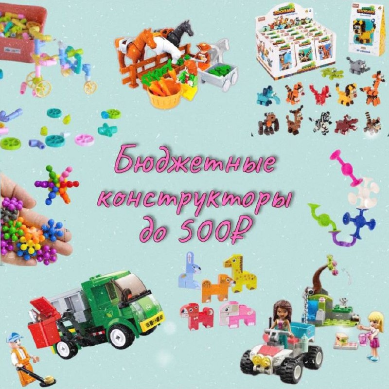 Бюджетные конструкторы до 500₽ Сюжетно-ролевые: 🟤Королевская гардеробная, 103 детали 🟤Конюшня, 89 деталей 🟤Спасательный автомобиль, 106 деталей 🟤Кошачья площадка, 103 детали 🟤Мусоровоз, 118 деталей Для малышей 🟤Веселые зверята, 36 деталей и набор наклеек 🟤Синий трактор «Поиграем вместе, 18 деталей 🟤Сафари, 11 деталей 🟤Из крупных блоков, 100 деталей Для свободного творчества 🟤Из строительных трубочек, 225 деталей 🟤Пластиковый первый, 288 деталей 🟤Пластиковый второй, 265 деталей 🟤Снежинки, 500 деталей 🟤Механический, с вращающимися шестеренками, 114 деталей 🟤Забавные присоски, 36 деталей 🟤Еще одни снежинки, 100 деталей Подходят как подарки в детсад или для любителей собирать коллекции 🟤Мини зоопарк 🟤Динозавры Приглянулось что-то? Есть чем дополнить?)