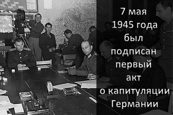 7 мая 1945 года в Реймсе в первый раз был подписан акт о безоговорочной капитуляции Германии