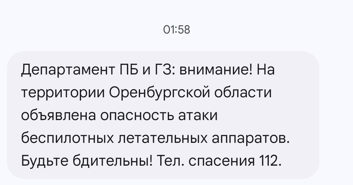 ❗❗На территории Оренбургской области объявлена опасность атаки беспилотных летательных аппаратов. Будьте бдительны! Тел. спасения 112.
