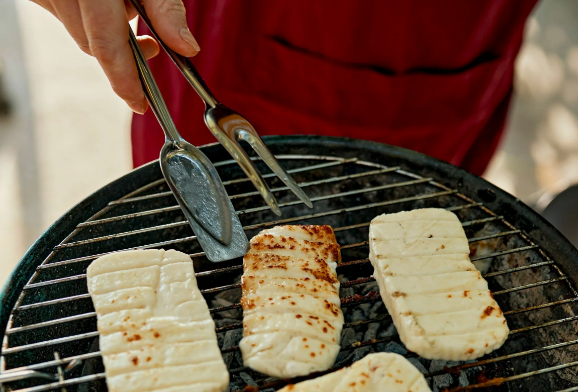 Нарежьте сыр ломтиками 0,7–1 см, смажьте маслом, посыпьте приправами. Обжаривайте 1–2 мин с каждой стороны на раскалённом гриле.