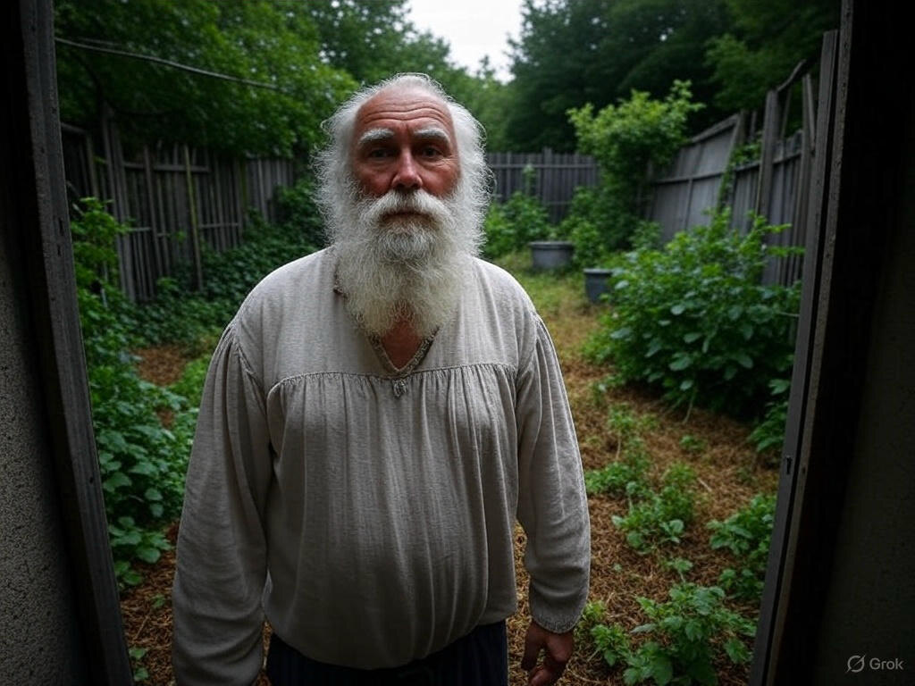 Однажды, гуляя по окраине деревни, она заметила странный участок земли. С одной стороны — густой лес, с другой — разрушенная изгородь и неухоженные деревья. Это был заброшенный сад. Катя остановилась и присмотрелась. Прямо у ворот стоял старик с длинной седой бородой, в грубой деревенской рубахе. Он внимательно наблюдал за каждым прохожим и, казалось, был готов в любой момент вмешаться, если кто-то осмелится приблизиться к его владениям.